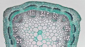 (photo de parenchyme de luzerne, grossissement x100. En botanique, les parenchymes sont des tissus végétaux constitués de cellules vivantes).