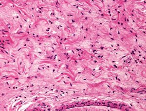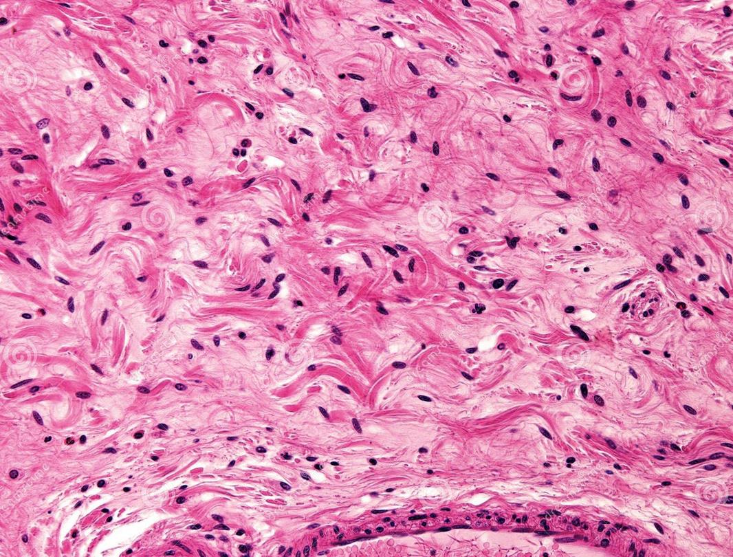 Exemple, ici. On a une photo au microscope de tissus conjonctifs lâches :